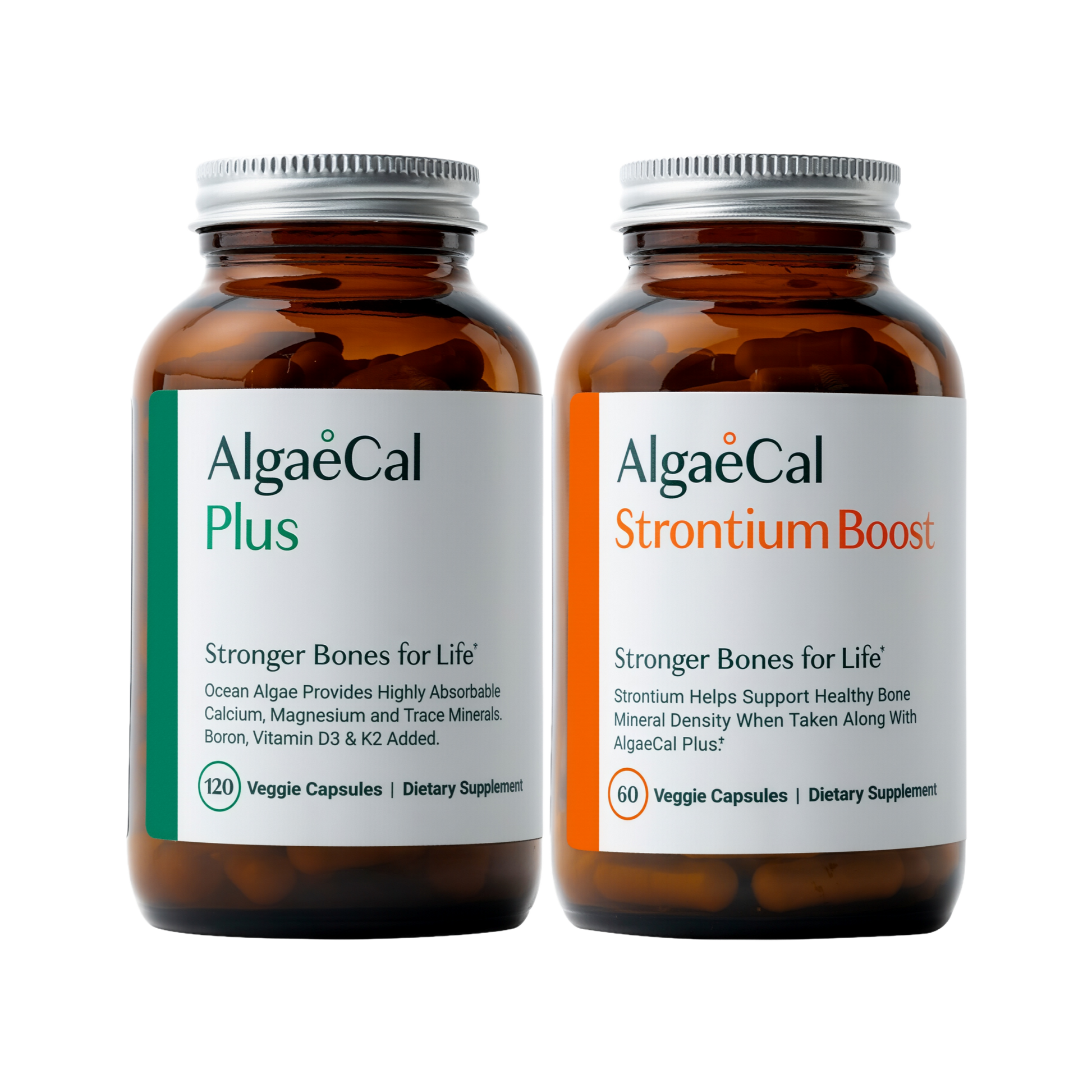 If you are suffering from bone loss, it is best to take both AlgaeCal Plus and Strontium Boost. Together they are clinically supported to increase bone density in as little as 6 months – at any age! They also increase your bone density at a faster rate than AlgaeCal Plus alone.