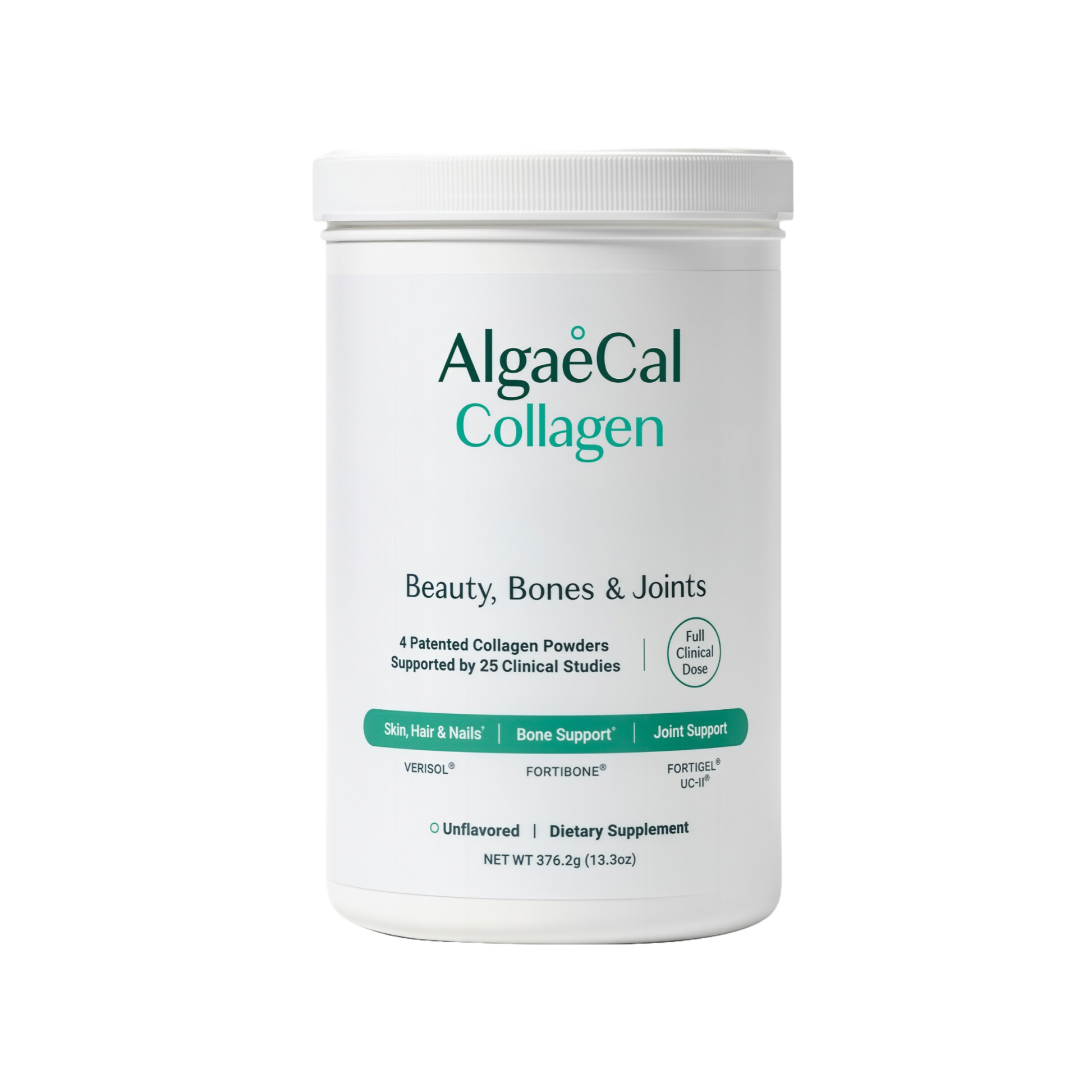 Each serving of AlgaeCal Collagen contains full clinical doses of Types I, II, & III collagen.